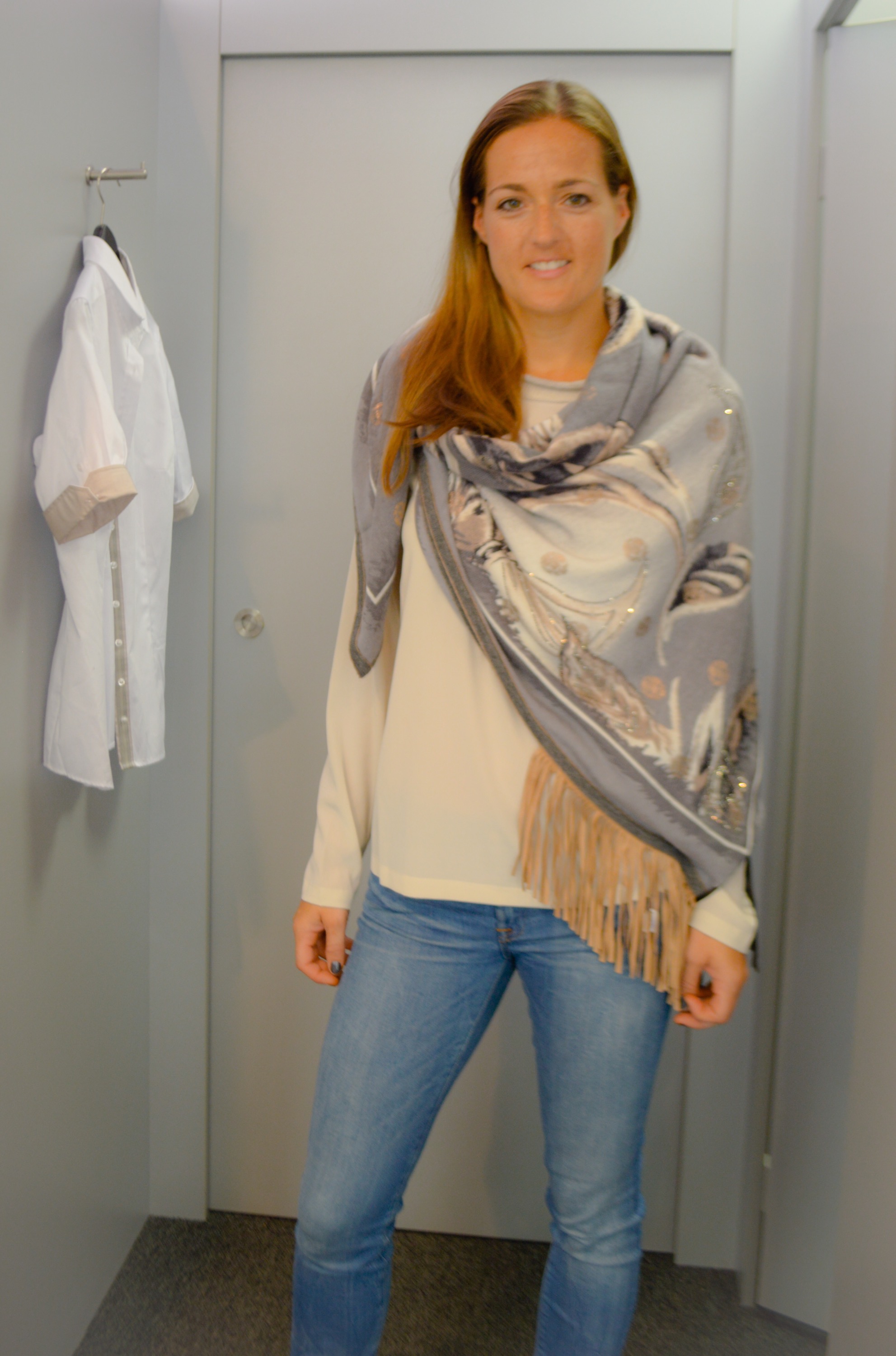 pullover: NC nice connection; blouse: byMI; jeans: 7 for all mankind;scarf (background): NC nice connection; bag: Fred`s Bruder