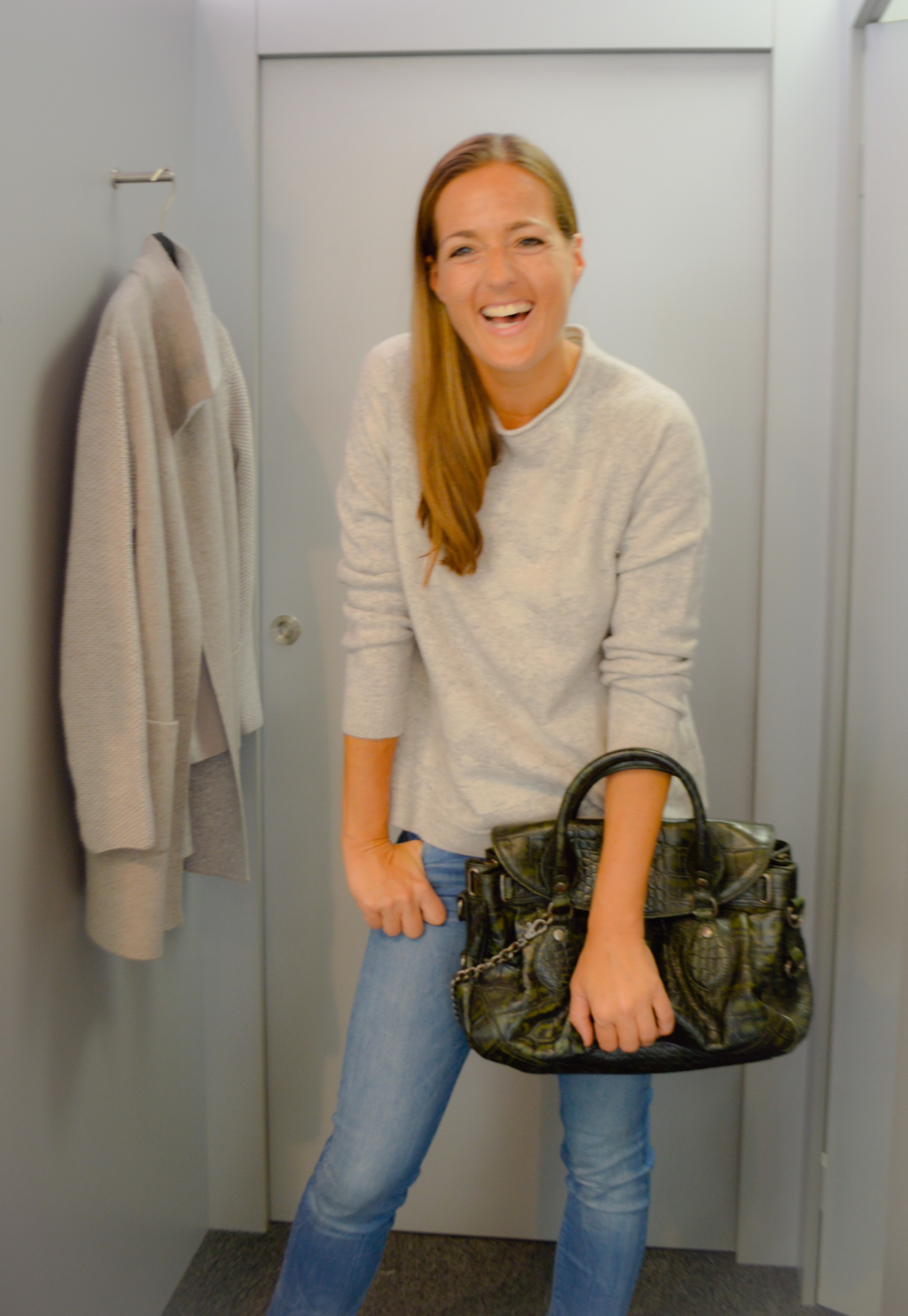 Sweater: Sportalm; bag: Voi; jeans: 7 for all mankind; shoes: St. Emile