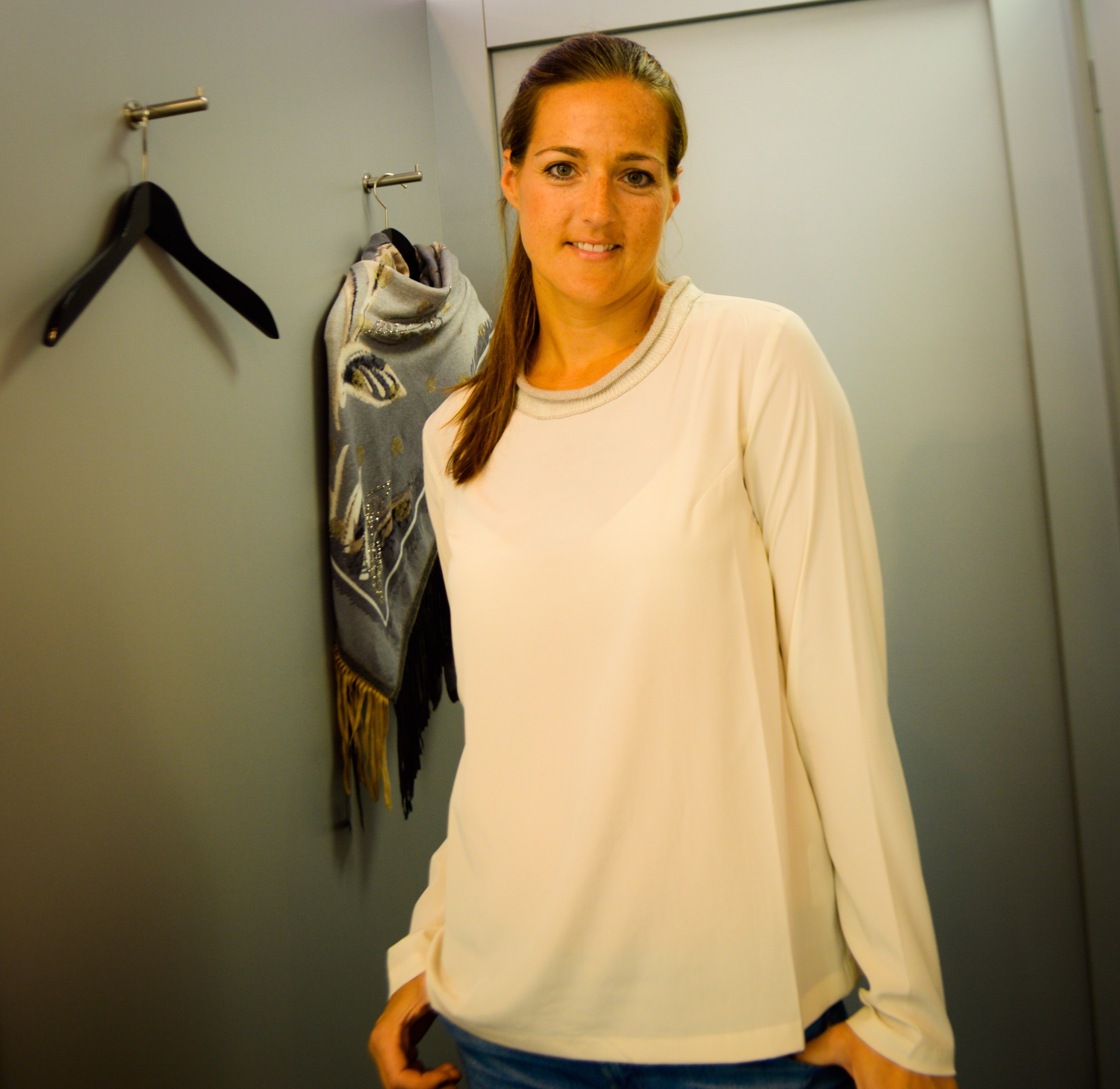 jersey, shirt, scarf: NC nice connection; blouse: byMi; jeans: 7 for all mankind
